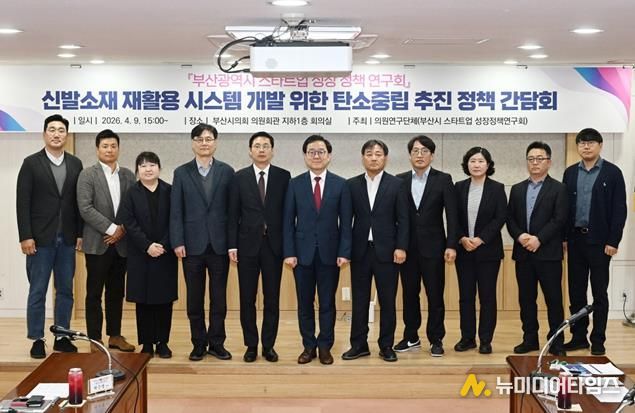 부산광역시의회 의원연구단체인 '부산광역시 스타트업 성장 정책 연구회'는 4월 9일 오후 3시, 부산시의회 의원회관 회의실에서 ‘신발소재 재활용 시스템 개발을 통한 탄소중립 추진 정책 간담회’를 개최했다.