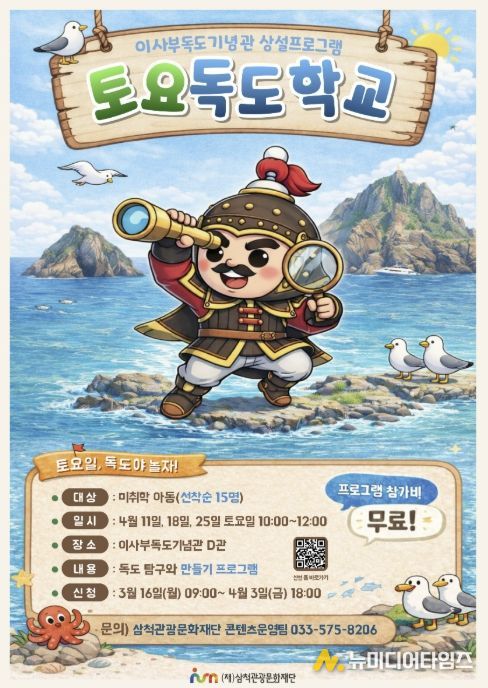 관내 유아와 아동을 대상으로 하는 토요독도학교는 독도와 이사부에 대한 이해를 돕는 체험형 교육을 제공한다. 오는 4월 11일 시작되는 1기 교육은 15명 정원에 50명이 신청하는 등 지역사회의 높은 관심을 얻었으며, 향후 기수별로 지속 운영될 예정이다.