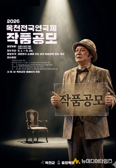 군 관계자는 “지난해 제2회 연극제에는 전국 58개 극단이 참여해 11대 1의 경쟁률을 기록하는 등 옥천이 연극의 새로운 중심지로 주목받고 있다”며 “올해는 ‘연극산책’이라는 테마에 맞춰 관객과 더욱 가까이 호흡하는 수준 높은 공연을 선보일 예정인 만큼, 역량 있는 예술인들의 많은 참여를 기대한다”고 말했다.