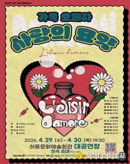 하동군이 오는 4월 29일·30일 오후 7시 30분, 하동문화예술회관에서 사단법인 경상오페라단의 가족오페라 ‘사랑의 묘약’을 선보인다.