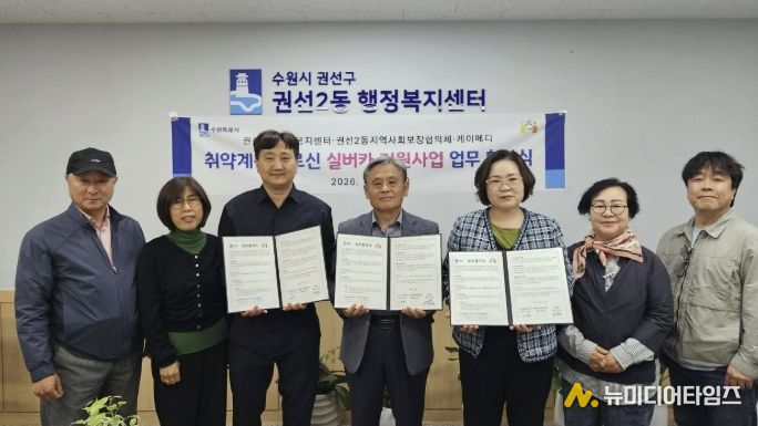 수원시 권선구 권선2동은 지난 23일, 권선2동 지역사회보장협의체, 케이메디와 취약계층 어르신의 안전한 이동 지원과 삶의 질 향상을 위한 “실버카(보행보조기) 지원사업 업무협약(MOU)”을 체결했다.