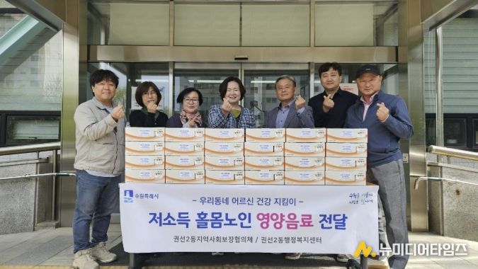 수원시 권선구 권선2동 지역사회보장협의체는 지난 23일, 저소득 홀몸노인 건강증진과 정서적 안정을 위한 “우리 동네 어르신 건강지킴이 영양음료 전달사업”을 진행했다.