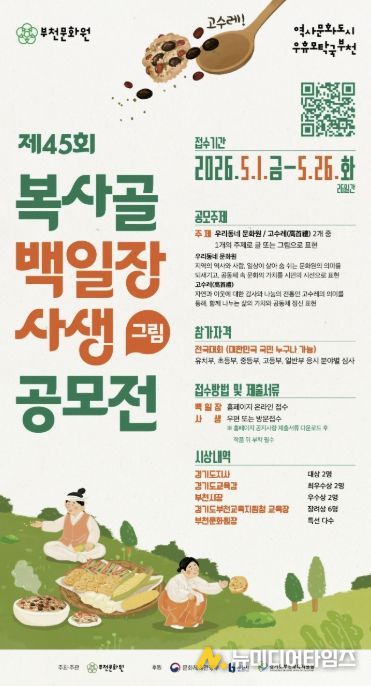 부천문화원이 설립 60주년을 기념하여 지역 문화의 가치를 시민과 공유하고 향토문화의 지속가능한 기반을 마련하기 위한 ‘제45회 복사골 백일장·사생(그림) 공모전’을 개최한다. 이번 공모전은 지난 60년간 지역 문화의 구심점 역할을 해온 부천문화원의 역사를 되짚어보고, 국민의 참여를 통해 지역 공동체의 유대감을 강화하고자 기획됐다.
