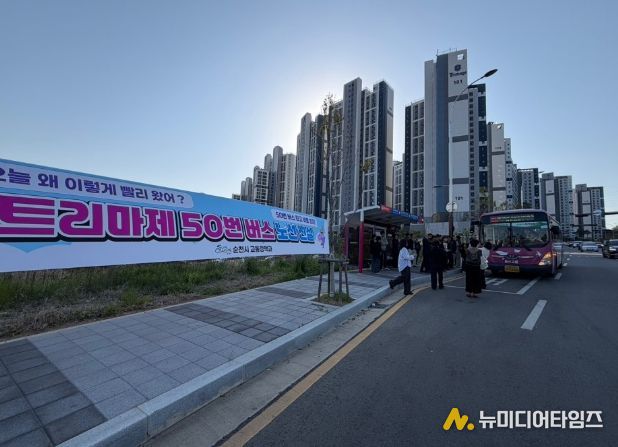 순천시는 27일부터 트리마제 아파트 주민들의 대중교통 이용 불편을 해소하기 위해 50번 버스 노선을 신설하고 본격 운행에 들어간다고 밝혔다.