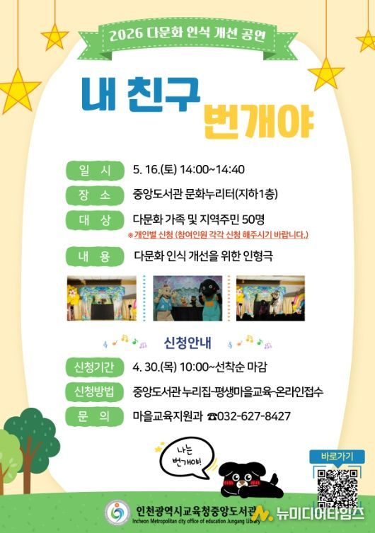 인천광역시교육청중앙도서관은 오는 5월 16일 다문화 인식 개선 공연 ‘내 친구 번개야’를 운영한다.