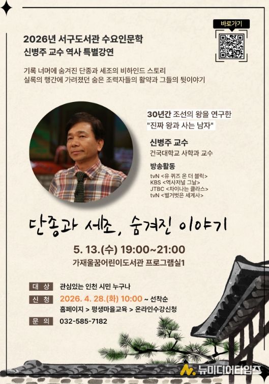 인천광역시교육청서구도서관은 4월 28일부터 ‘단종과 세조, 숨겨진 이야기’ 특별 강연 참여자를 모집한다.
