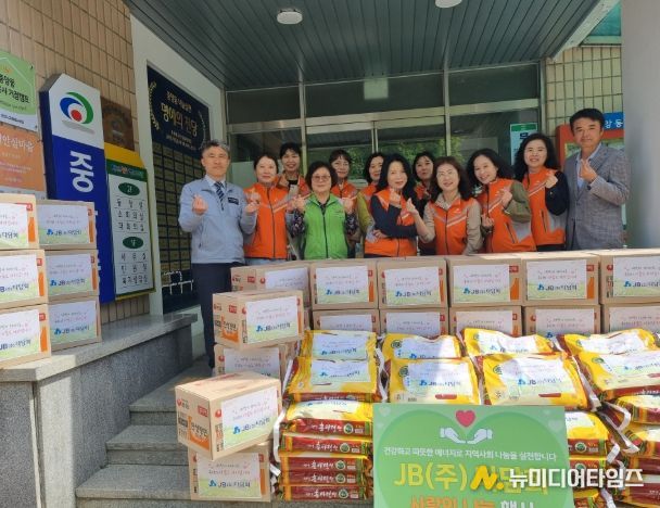 JB㈜ 임원 배우자 모임인 다담회는 이날 지역 이웃을 위해 라면 50박스와 쌀(10kg) 50포 등 약 400만 원 상당의 생필품을 천안시자원봉사센터에 기탁했다.