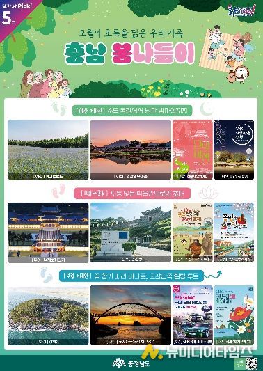 충남도는 5월 가정의 달을 맞아 황금연휴에 가족과 함께 1∼2일 일정으로 다녀오기 좋은 여행지를 담은 ‘월간 충남 5월호’를 발간했다.