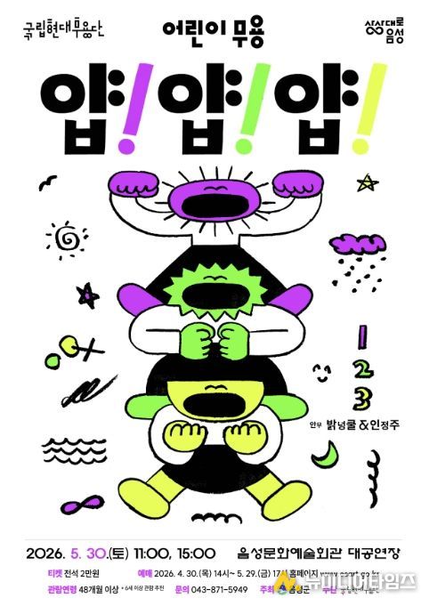 음성군은 어린이들을 춤의 세계로 초대하는 국립현대무용단의 어린이 무용 '얍! 얍! 얍!'을 오는 5월 30일 음성문화예술회관에서 개최한다고 밝혔다.