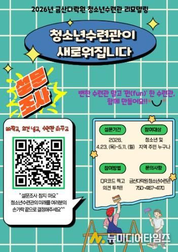 금산군은 금산군청소년수련관의 시설 개선 및 공간 재구성을 위한 리모델링을 앞두고 5월 11일까지 청소년·군민 의견 수렴에 나섰다.