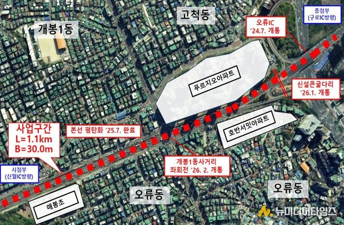 이번 개선공사는 2016년 착공 후 방음벽 상향 설치와 굴다리 신설 등 현장 여건과 주민 요구사항을 지속적으로 설계에 반영했고 시민 불편을 줄이기 위해 주요 시설은 순차적으로 개통했다. 또 연약지반과 지중 매설물 이설 등 다양한 변수 속에서도 안전을 최우선으로 공사를 마무리했다. 오류IC교는 2024년 7월 개통했고 신설 큰굴다리는 2026년 1월, 개봉1동사거리 좌회전 개통은 올해 2월 차례로 진행했다.