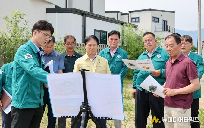 이날은 용산 재해위험개선지구 정비사업 현장을 시작으로 구시천 정비사업, 철산 풍수해생활권 종합정비사업, 동락 재해위험개선지구 정비사업 현장을 차례로 방문하여 해당 지역의 읍․면장, 이장과 함께 공사 진행 현황, 비상 장비 및 인력 배치 상황, 지역 주민여론 청취 등 전반적인 사전 대비 상황을 종합적으로 점검했다.