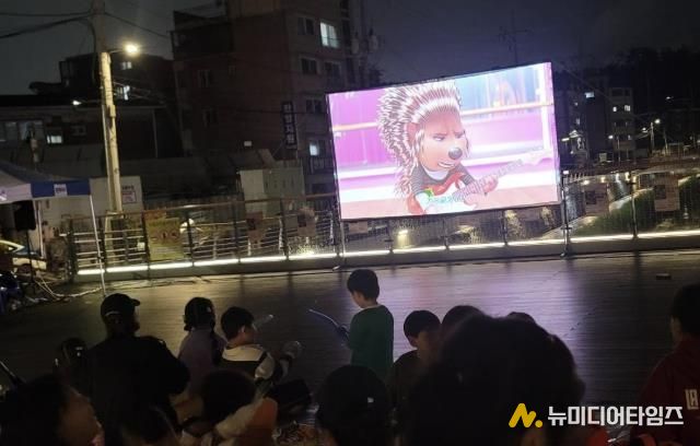 행사장에는 야외 스크린이 설치돼 감성적인 분위기 속에 영화가 상영됐다. 상영된 영화는 가족영화 ‘씽(Sing)’으로 관람객들에게 따뜻한 공감과 위로를 전했다. 팝콘과 음료는 마을 주민들이 손수 준비해 나눔의 의미를 더했다.