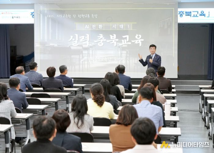 이어, '어디서나 운동장', '공부하는 학교', '언제나 책봄', '모두의 다채움', '온마을 배움터' 등 '실력다짐 충북교육' 5대 핵심정책을 소개하며, 학교의 성장 사례를 공유하고 직원들과 질의응답을 진행했다.