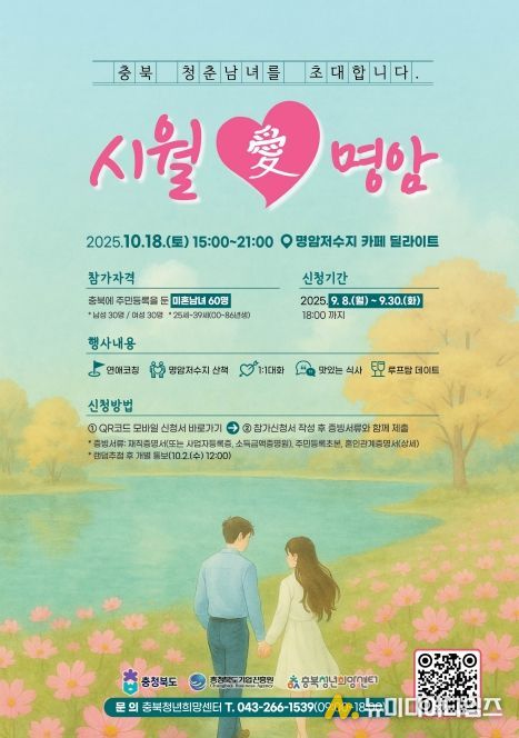 충북도는 지난 10월 18일 청주 명암저수지 일원에서 도내 청춘남녀 60명이 함께한 '시월 애(愛) 명암' 행사를 청년들의 열띤 호응 속에 성료했다고 밝혔다.