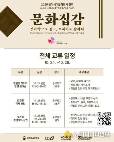청주시와 청주시문화산업진흥재단은 오는 24일부터 26일까지 문화제조창 동부창고 일원에서 ‘2025 동아시아문화도시 교류사업 – 문화집감(文化執感)’을 펼친다.