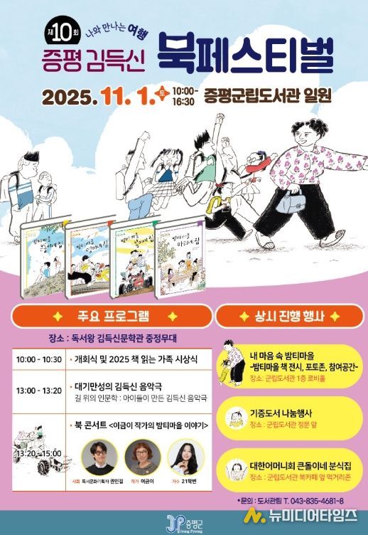 이재영 군수는 “이번 북페스티벌이 책을 통해 서로를 이해하고 응원하는 따뜻한 연대의 장이 되길 바란다”며 “군민 모두가 함께 배우고 나누는 책 읽는 도시 증평의 매력을 만끽하길 바란다”고 말했다.