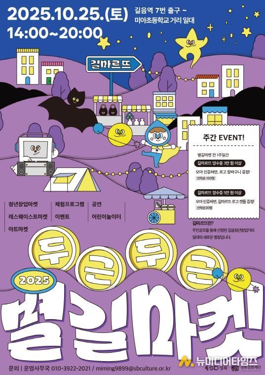 성북구가 오는 25일, 길음동 삼양로(길음역~미아초등학교 구간) 일대에서 ‘2025 두근두근 별길마켓’을 개최한다. 행사는 오후 2시부터 8시까지 진행되며, 오후 2시 40분에는 삼양로 국민대학교 길음생활관 앞에서 오카리나 사전공연과 함께 개막식이 열린다.