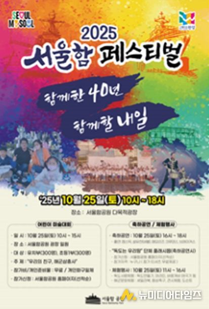 서울시 미래한강본부는 25일 오전 10시부터 오후 6시까지 망원한강공원 내 서울함공원에서 선선한 가을을 맞아 시민들과 함께하는 특별한 축제 '2025 서울함 페스티벌'을 개최한다고 밝혔다.