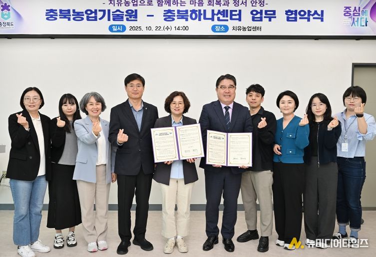 충북농업기술원은 10월 22일 치유농업센터에서 충북하나센터와 북한이탈주민의 심리·정서적 안정을 지원하기 위한 업무협약을 체결했다고 밝혔다.