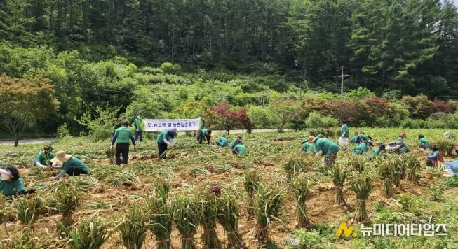 지난 6월 17일부터 19일까지 진행된 단양농산물 수확 일손돕기 행사에는 서울시 24개 자치구 부녀회 1,052명이 참여해 26농가의 마늘 수확을 도왔다.