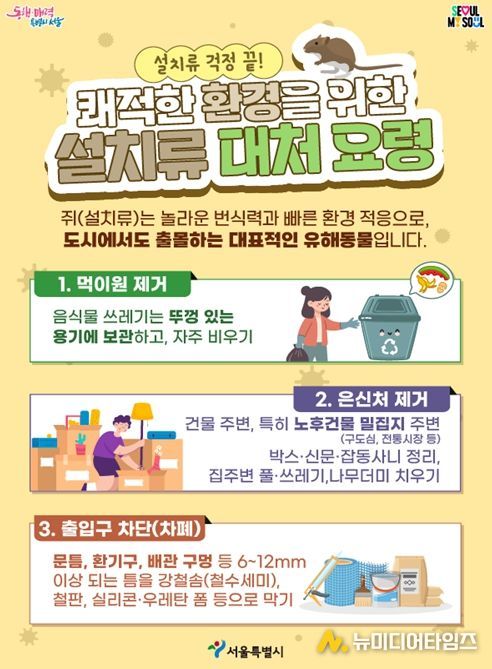 서울시는 구와 함께 하는 ‘통합 방제’도 지속한다. 매월 넷째 주 자치구의 ‘클린 데이’ 활동과 연계해 쥐 출몰 다발 지역을 중심으로 구서 활동과 소독·청소한다.