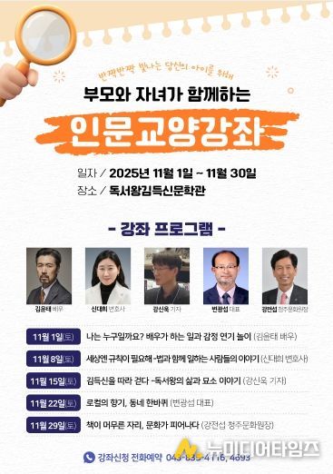 이번 강좌는 11월 한 달간 매주 토요일 오후 2시, 총 5회에 걸쳐 진행되며, 세대가 함께 공감하고 배움의 즐거움을 나눌 수 있는 다채로운 강의로 구성됐다.