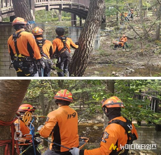 서산소방서은 20일부터 23일까지 소방서 훈련탑과 가야산 용현계곡에서 가을철 산악사고 대비 특별구조훈련을 실시했다.