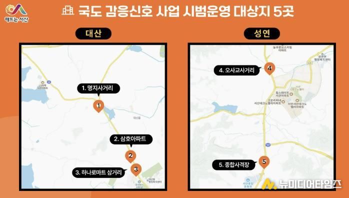 시범 운영되는 교차로는 종합 사격장, 오사교사거리, 대산농협사거리, 삼호아파트, 명지사거리 5곳으로, 대산공단 출퇴근 시간 교통정체가 집중되는 주요 교차로다.