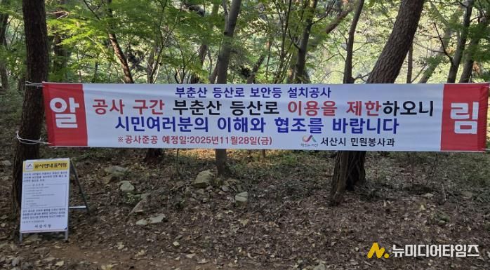 충남 서산시가 부춘산 등산로의 야간 안전을 개선하기 위해 부춘산 등산로 내 보안등 설치 공사를 실시한다고 24일 밝혔다.