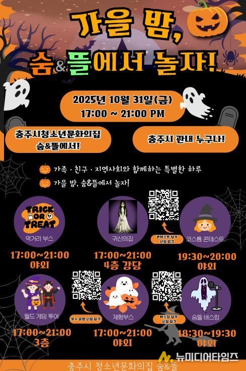 충주시청소년문화의집 숨·뜰에서는 10월 31일 오후 5시부터 9시까지 ‘가을밤, 숨뜰에서 놀자!’ 행사를 진행한다고 밝혔다.