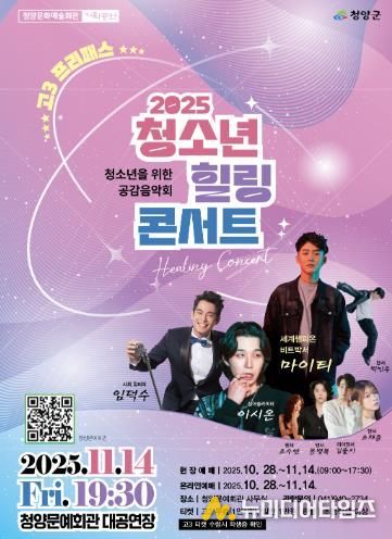 청양군은 오는 11월 14일 저녁 7시 30분, 청양문예회관 대공연장에서 ‘2025 청소년 힐링콘서트’를 개최한다고 밝혔다.