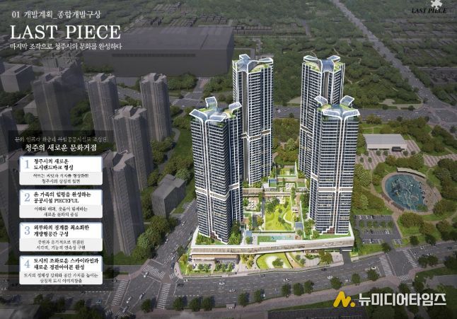 선정된 컨소시엄은 ‘마지막 조각으로 청주시의 문화를 완성하다-LAST PIECE’를 비전으로 공공시설 개발 콘셉트인 ‘온 가족이 즐기는 행복한 힐링공간’을 구현하기 위해 직업체험관, 도서관, 로컬푸드직매장, 키즈카페 등 시민 생활과 밀접한 공공문화시설을 청주시에 기부 채납해 시민이 언제든 이용할 수 있는 열린 공간을 조성할 계획이다.