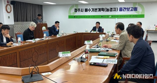청주시는 24일 제2임시청사 소회의실에서 신병대 부시장 주재로 농경지 배수기본계획 수립용역 중간보고회를 개최했다.