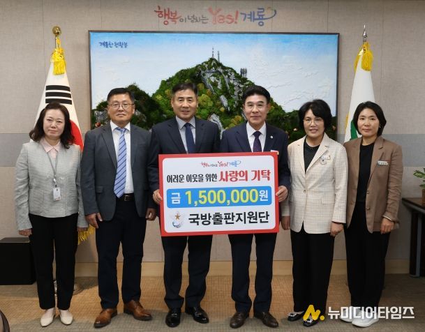 계룡시는 지난 24일 국방출판지원단(단장 신기진)으로부터 현금 150만 원을 기탁받았다고 밝혔다.