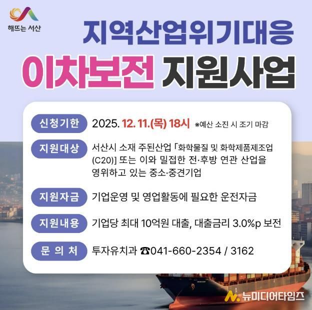 충남 서산시가 지역 석유화학 관련 기업의 경영 안정을 위해 ‘지역산업위기대응 이차보전 지원사업’을 본격 추진한다고 밝혔다.