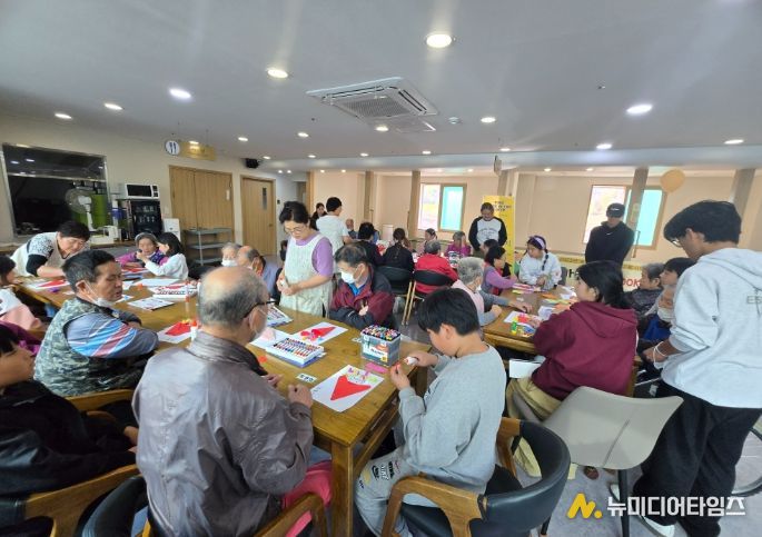 이날 어르신 25명에게 직접 만든 우유푸딩케잌을 전달하고 티슈 공예 체험도 함께 즐겼다.