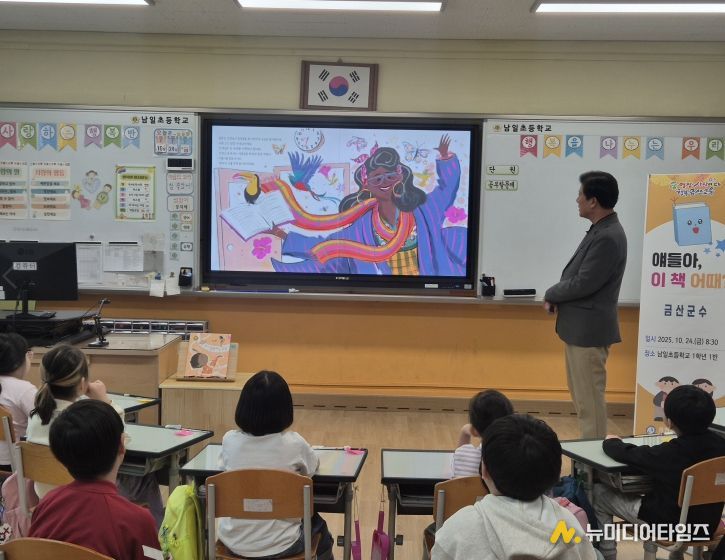 박범인 금산군수는 지난 24일 남일초를 방문해 학생들과 함께 그림책 읽는 시간을 가졌다.