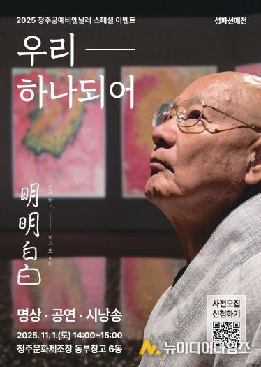 청주공예비엔날레조직위원회(위원장 이범석 청주시장, 이하 조직위)는 오는 11월 1일 오후 2시 문화제조창 동부창고 6동에서 진행하는 ‘성파 선예전’ 연계 프로그램 ‘우리 하나되어’의 참여자를 모집한다고 밝혔다.