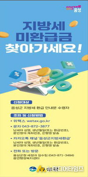 음성군은 군민의 납세 편의와 권익 보호를 위해 지방세 환급 안내문 발송을 완료하고 환급금 지급을 본격 추진한다고 29일 밝혔다.
