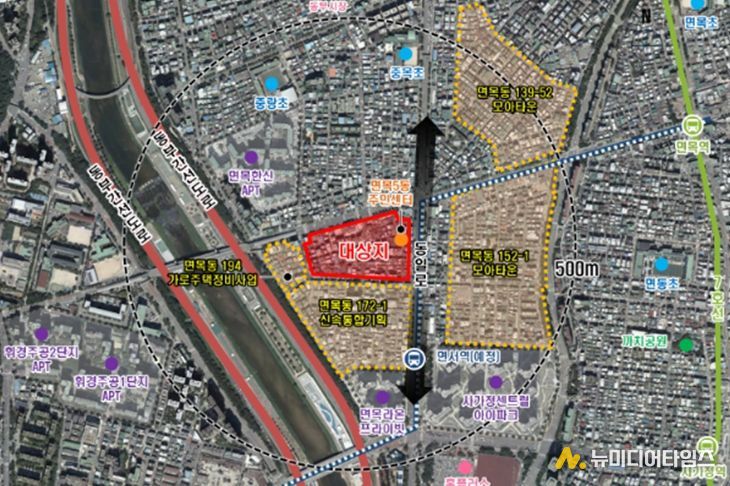 서울시가 면목동 174-1 일대 주택정비형 재개발사업의 신속통합기획을 확정했다.(최고 35층, 약 970세대 규모) 이로써 면목5동 일대는 면목8구역(면목동 172-1 일대) 신속통합기획 등과 함께 중랑천 변의 활력을 높이는 新 주거단지로 거듭날 전망이다.