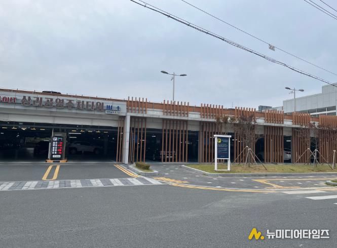 주차타워 정면에 적단풍나무 및 잔디를 식재해 도심 속 주차공간을 자연 친화적으로 조성했으며 이를 통해 이용객들이 쾌적한 환경에서 주차할 수 있게 했다.