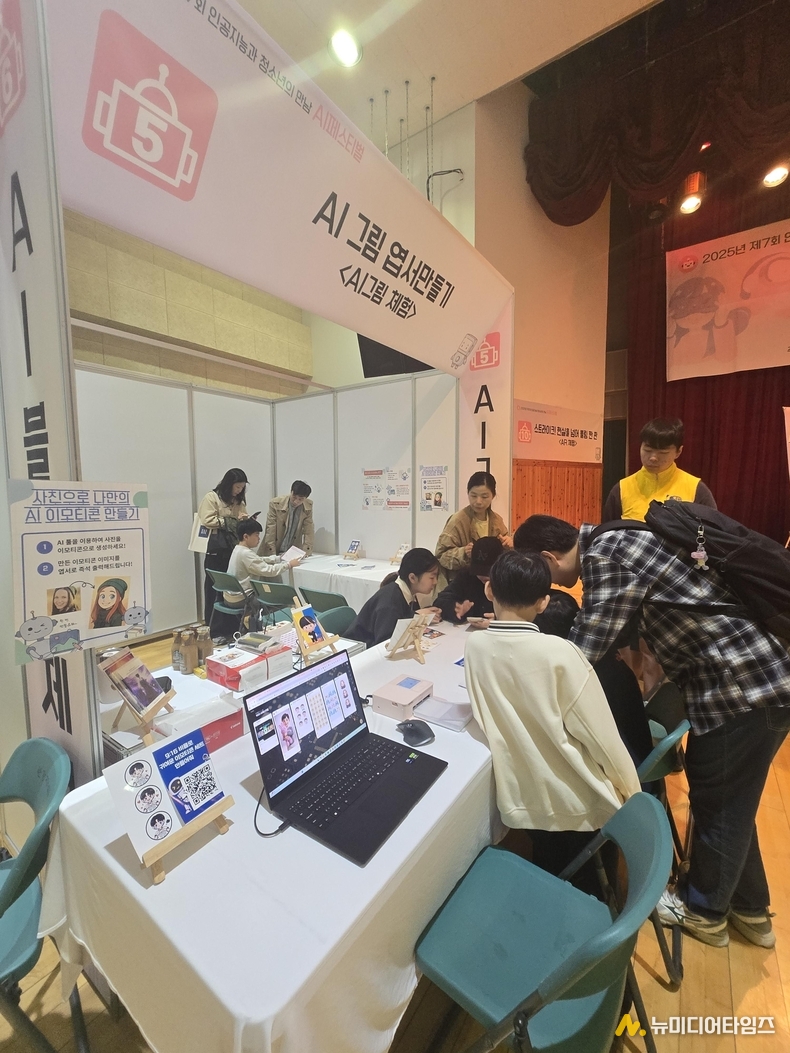 그중에서도 특히 한국AI작가협회(Korea Association of AI Artists)가 운영한 ‘AI 그림 엽서만들기’ 부스는 참가자들의 큰 호응을 얻었다. 이 체험은 참가자가 직접 가져온 사진이나 키워드로 AI를 활용해 이모티콘과 스티커 세트를 제작하고, 완성된 이미지를 엽서 형태로 즉석 출력해 기념품으로 가져갈 수 있는 프로그램이다.