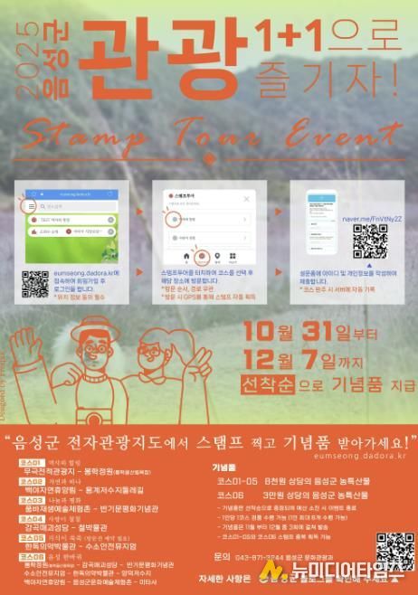 스탬프 투어 이벤트는 대한민국 국민 누구나 참여할 수 있다. 음성군 전자관광지도 사이트에 회원가입 후 6개의 관광 코스를 방문하면 스마트폰 위치정보를 통해 자동으로 전자 스탬프를 획득할 수 있고, 1인이 코스 당 관광기념품 1개씩 총 6개까지 수령 가능하다.