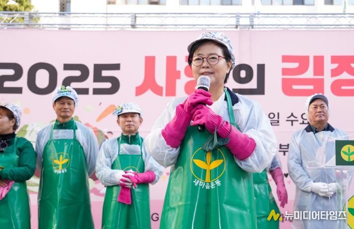 이순희 서울 강북구청장이 지난 12일 강북구청 광장에서 열린 ‘사랑의 김장나눔’ 행사에 참석해 어려운 이웃을 돕기 위해 김장 행사를 마련한 새마을지도자들에게 감사의 뜻을 전했다.