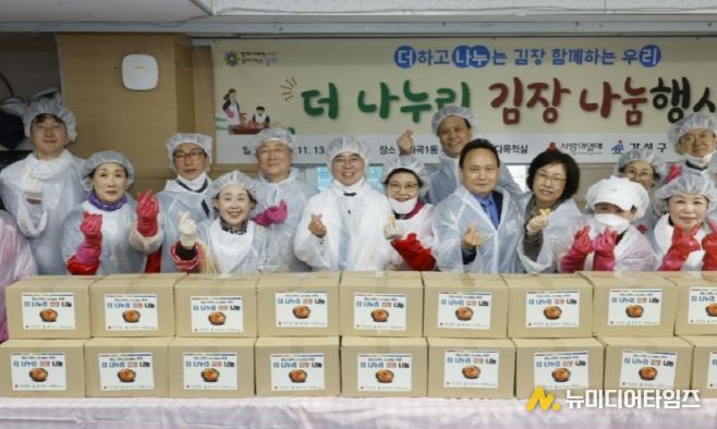 진교훈 서울 강서구청장이 13일 오전 화곡1동주민센터에서 열린 ‘김장 나눔행사’에 참석해 어려운 이웃에 전달할 김장김치를 담갔다.