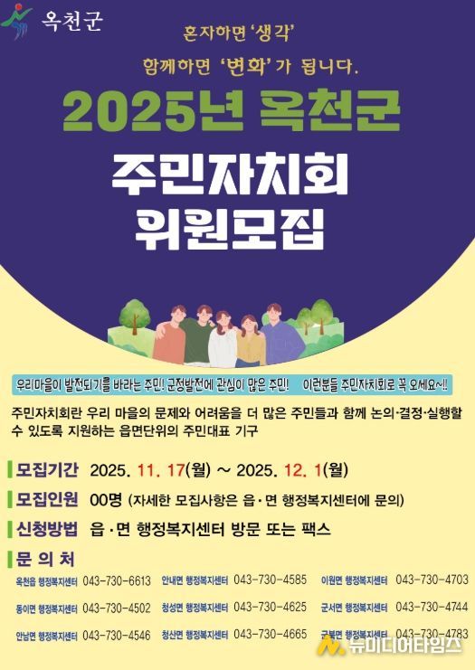 선정된 주민자치위원은 12월 중 옥천군수 위촉을 통해 임명되며, 2027년 말까지 읍·면 주민자치위원으로서 다양한 마을의 주민자치 관련 활동을 수행하게 된다.