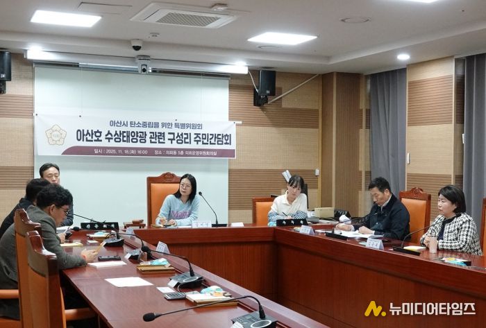 아산시의회 탄소중립특별위원회는 지난 18일 의회동 의회운영위원회 회의실에서 ‘아산호 수상태양광 사업’과 관련해 영인면 구성리 주민들과 간담회를 개최했다.