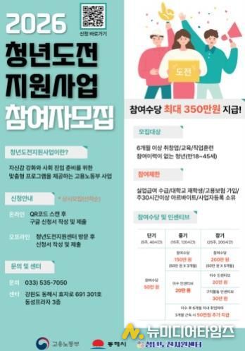 동해시는 2026년에도 청년들의 자신감 회복과 사회진입 역량 강화를 지원하기 위해 청년도전지원사업을 계속 추진하며, 오는 12월 15일부터 참가자를 모집한다.