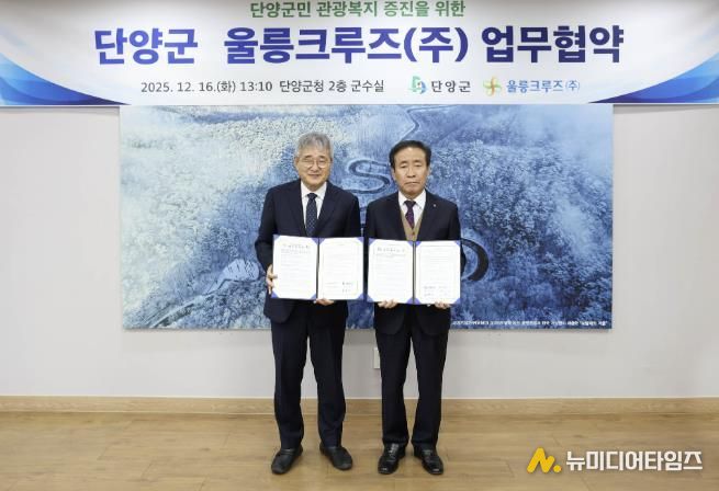 충북 단양군은 지난 16일 울릉크루즈(주)와 업무협약(MOU)을 체결하고, 군민을 대상으로 한 울릉도 여행 요금 할인 혜택을 추진한다고 밝혔다.
